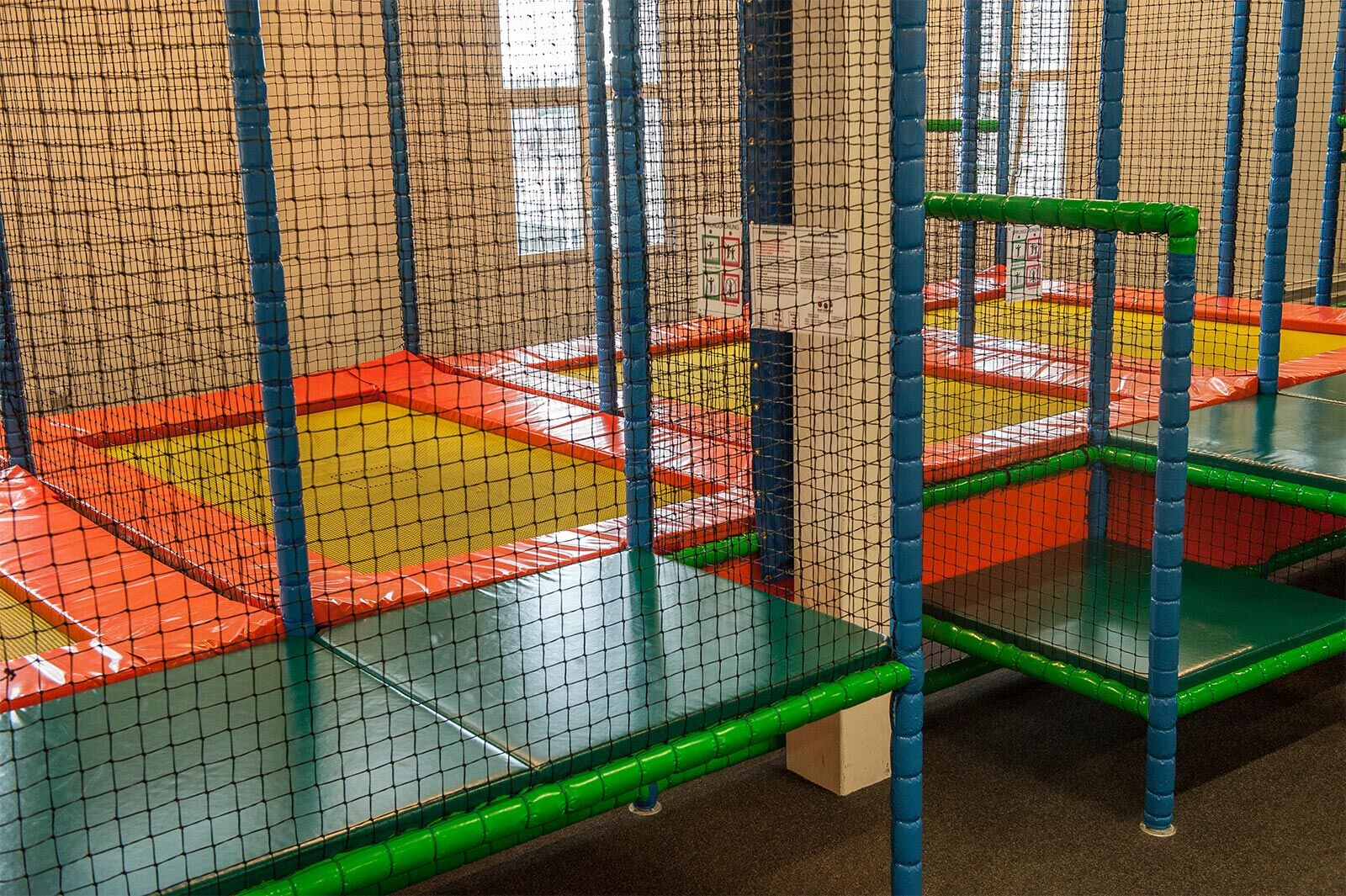 Auch Personen über 16 Jahre dürfen sich im Spielbereich aufhalten und mit den Kindern rumtoben. Das Kletterlabyrinth ist jedem Gewicht gewachsen, bei den Trampolinen besteht eine maximale Gewichtszulassung von 60kg.